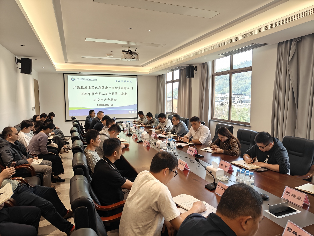 为深入贯彻落实广旅集团2026年安全生产工作部署要求,紧扣公司重点项目建设与经营发展实际,保障节后复工复产工作安全、有序、高效推进,2月24日,广旅巴马健康投资公司组织召开春节后复工复产暨第一季度安全