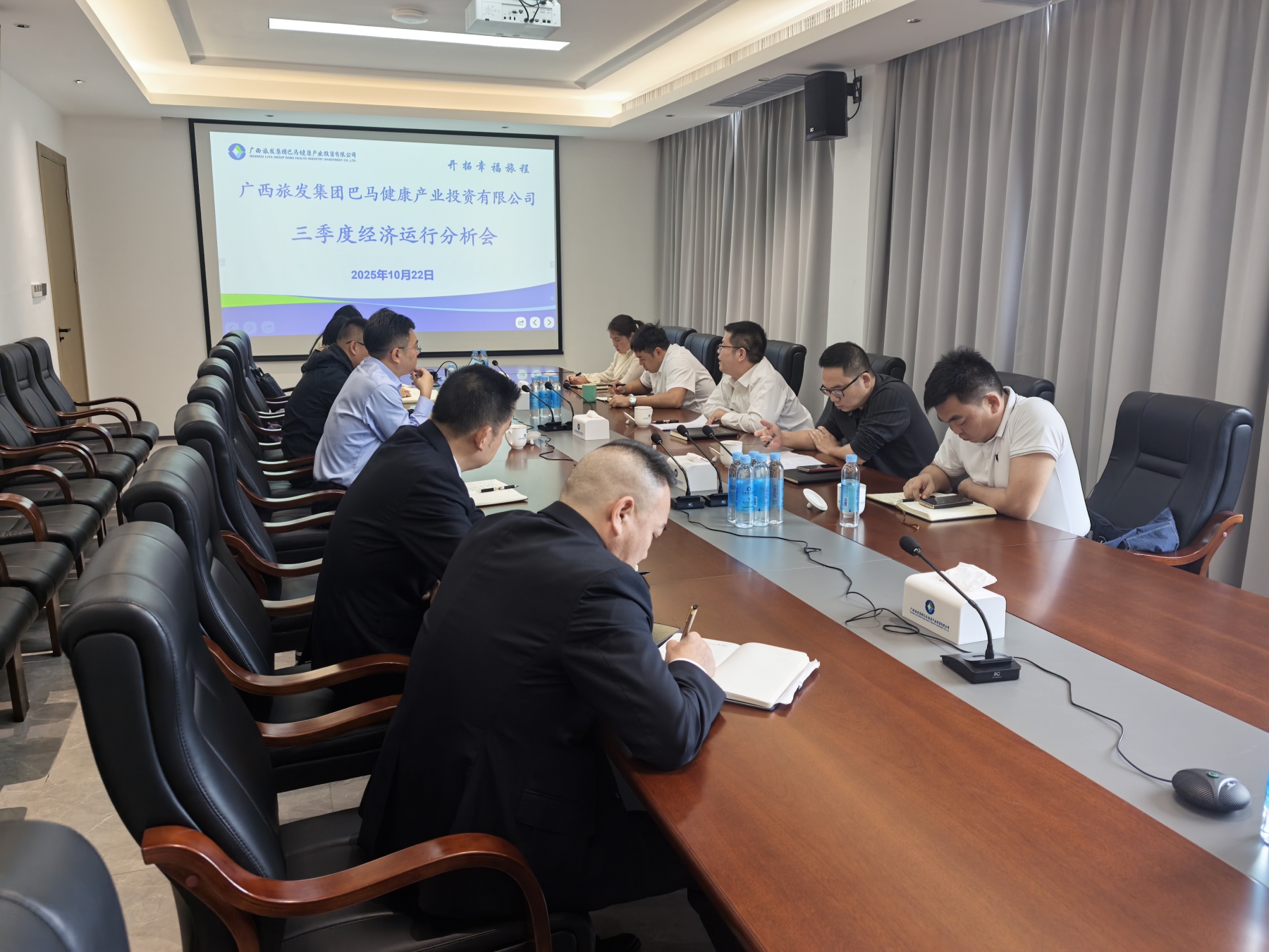 10月22日,广旅巴马健康投资公司召开2025年三季度经济运行分析会,总结前三季度经济运行情况,研判当前形势与短板,部署四季度冲刺全年目标工作。大健康集团党委委员、副总经理,巴马健康投资公司党支部书记