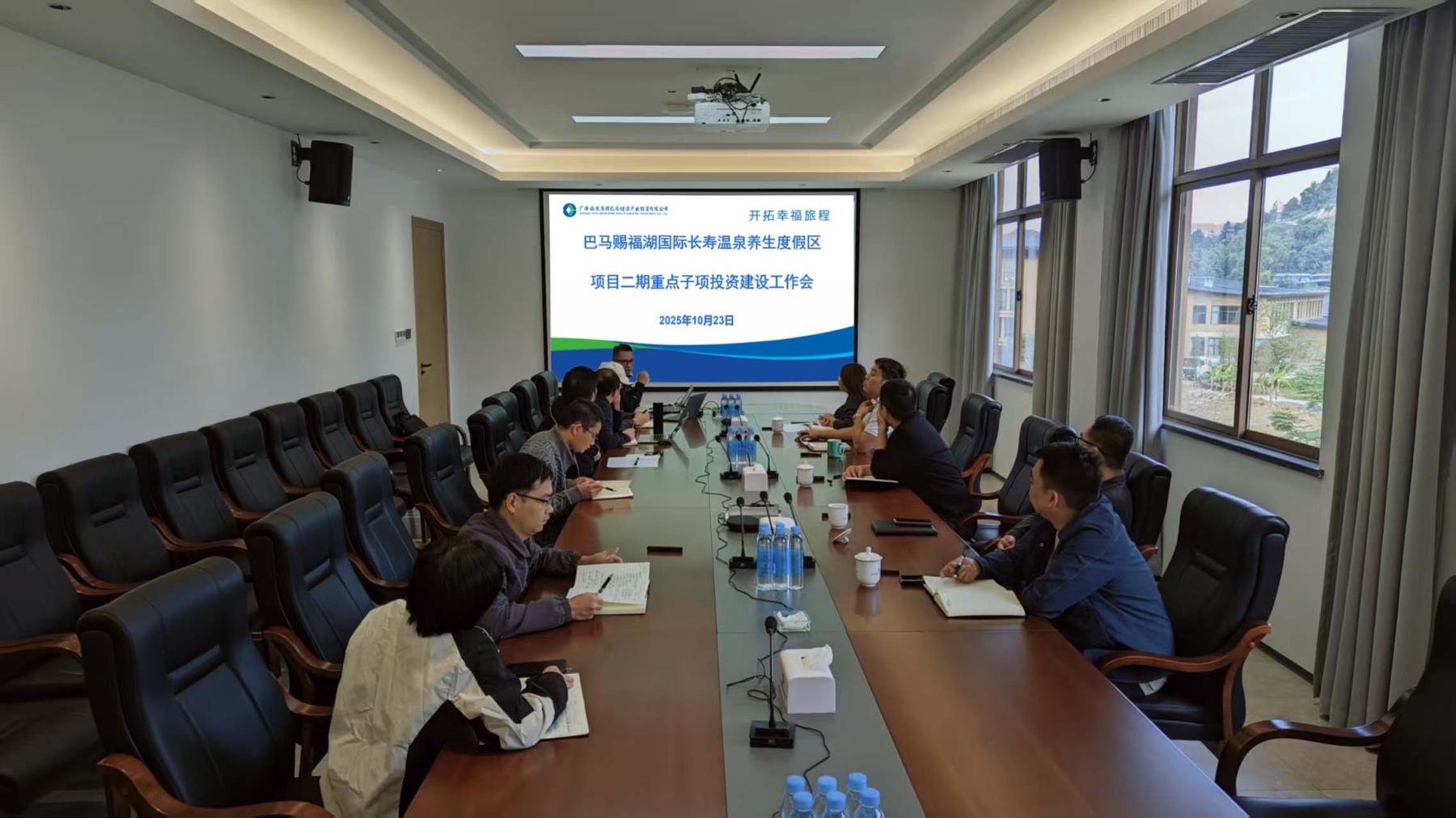 10月23日,广旅巴马健康投资公司组织召开巴马赐福湖国际长寿温泉养生度假区项目二期重点子项投资建设工作,广旅大健康集团党委委员、副总经理,广旅巴马健康投资公司党支部书记、董事长韦浩元,广旅巴马健康投资