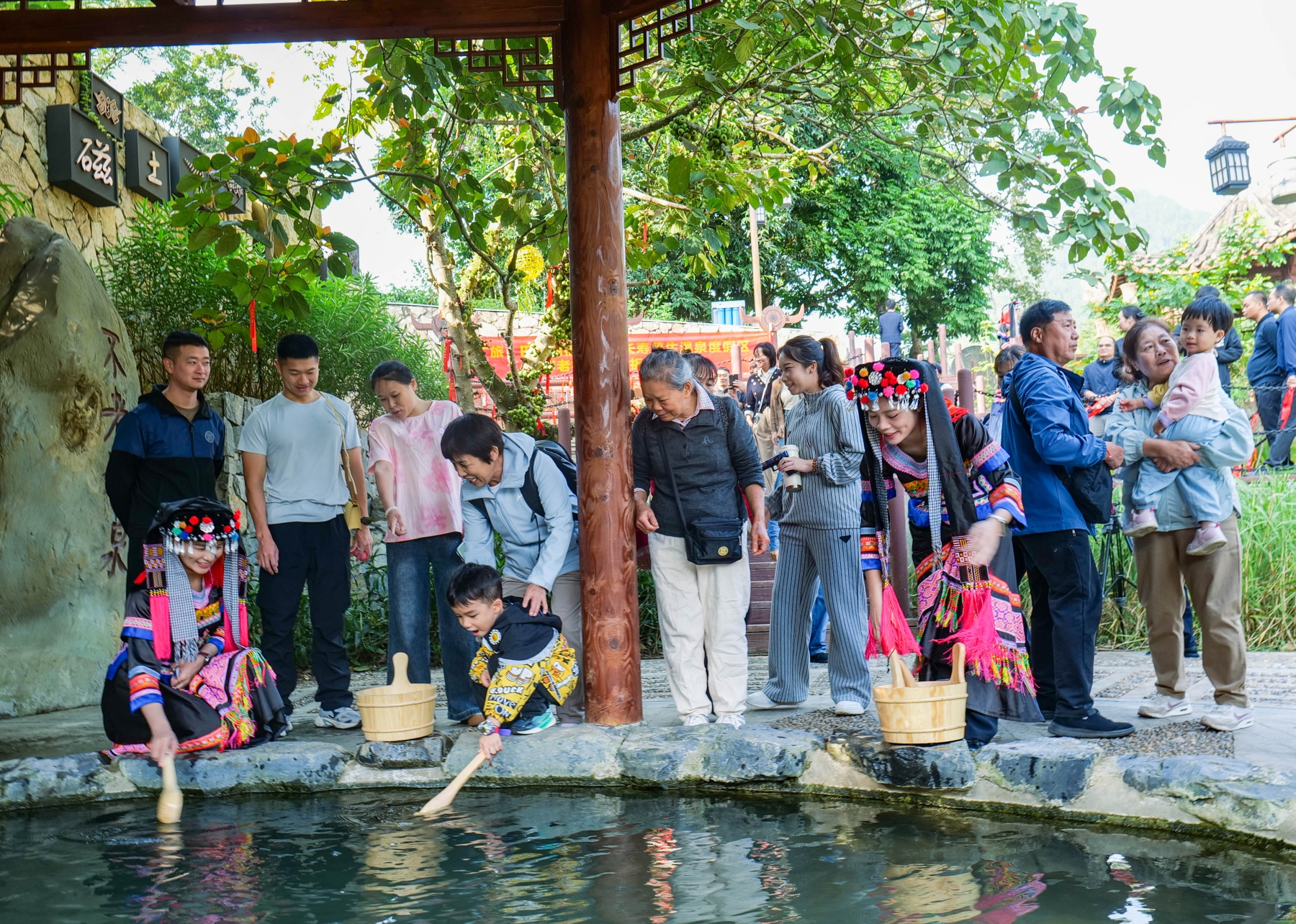10月29日上午,广旅·巴马君澜温泉酒店桃花仙谷不老神泉处茶香袅袅、情意融融,一场融合非遗文化与康养祈愿的不老神泉祈福活动温情呈现。从晨光微熹到暖意渐浓,现场宾客沉浸式体验“古法取水”、“泉水品茗”、