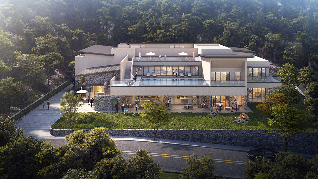 建筑面积9000㎡,共80间客房,配套有亲子活动区、厨房、餐厅、SAP房等,通过整合当地资源,发展具有地方特色的民宿集群,为游客提供多样化的住宿选择,同时促进当地旅游业的发展。