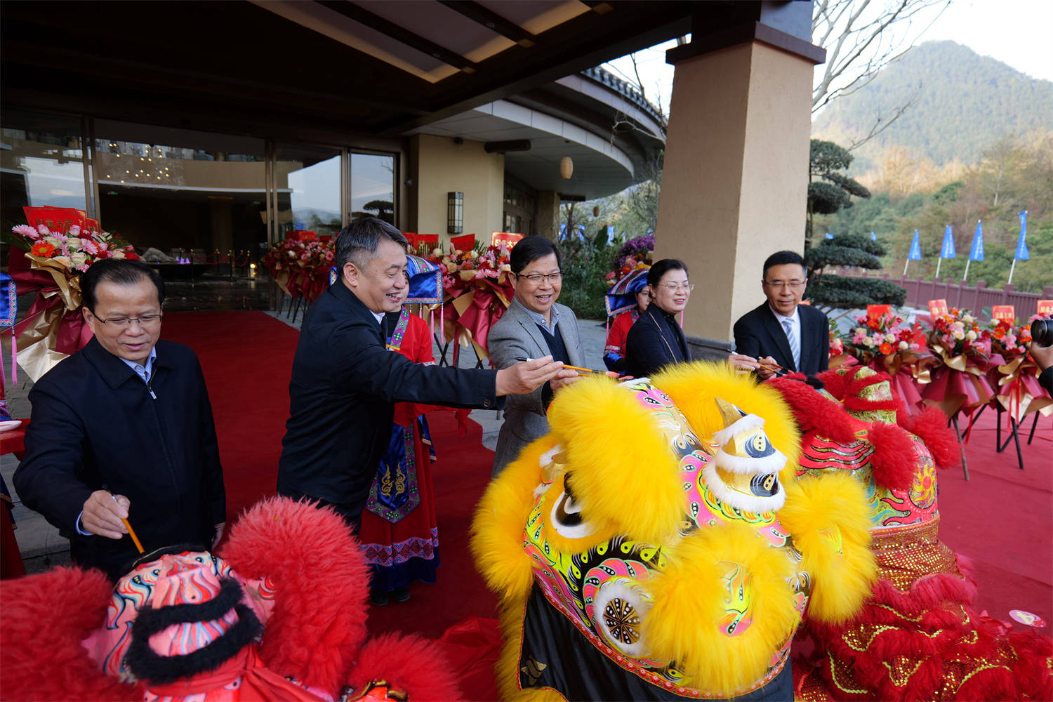 出席仪式的领导为舞狮点睛