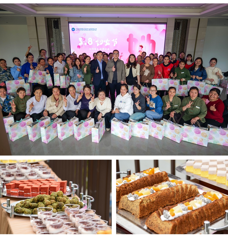 为凝聚巾帼力量、深化企业关怀,近日,广旅巴马健康投资公司工会以"美食为媒聚合力 巾帼同心向未来"为主题开展女职工慰问活动。公司总经理李乐章、总经理助理兼工会主席罗丽芳出席活动,并向全体女职工发放健康养生礼盒、公司定制文创等慰问品,现场听取女职工关于企业发展及工作生活的意见建议。