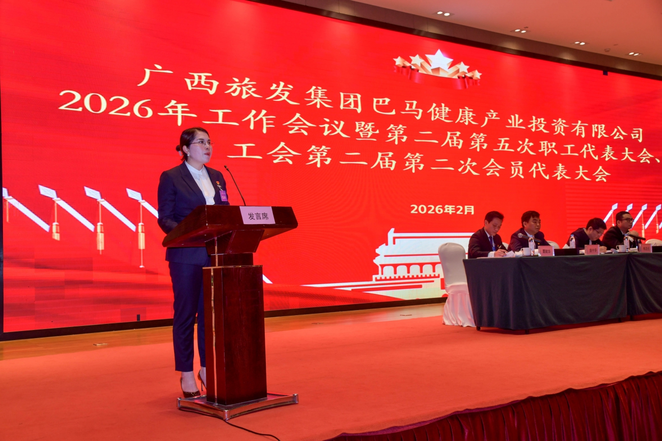 2月5日,广旅巴马健康投资公司召开2026年工作会议暨第二届第五次职工代表大会、工会第二届第二次会员代表大会。会议全面总结公司2025年工作成效,深入分析当前面临的挑战,系统部署2026年重点任务。广旅大健康集团党委委员、副总经理,巴马健康投资公司党支部书记、董事长韦浩元出席会议并讲话。巴马健康投资公司董事、总经理李乐章作公司工作报告,公司总经理助理、工会主席罗丽芳作工会工作报告。